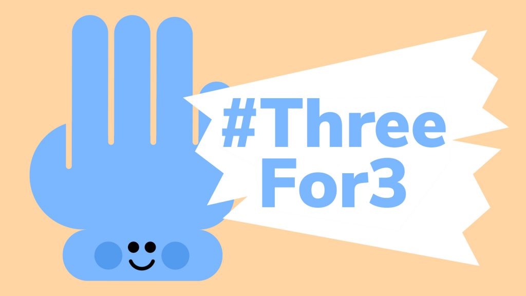 That’s why, we’re asking young people to share Three for 3. Write (or draw) three things you’re doing to look after your mental wellbeing during this challenging time and share these ideas with three other people.